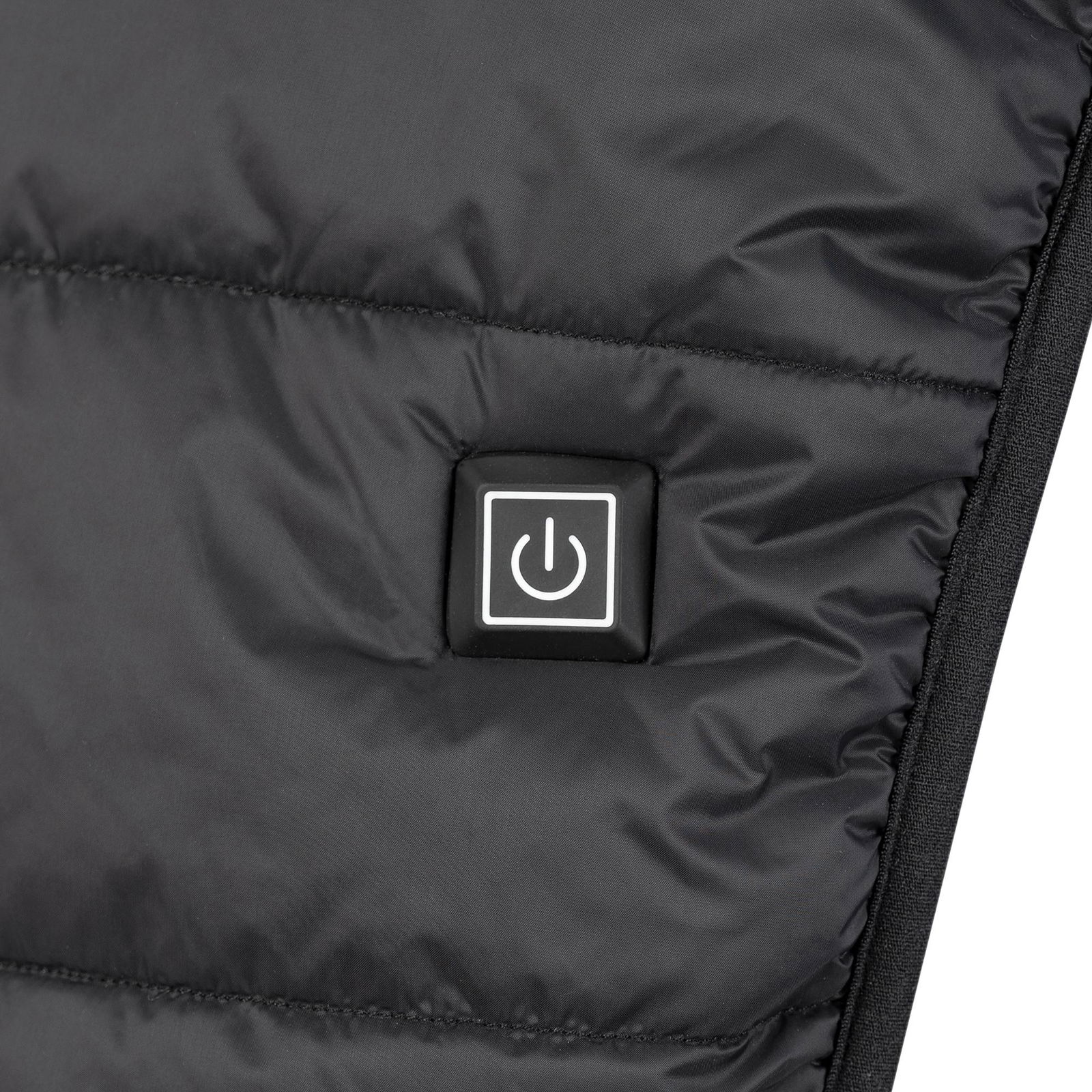 Heated padded vest with 3 zones. One size. Made from breathable and windproof quilted nylon, a thermal fleece lining and super lightweight thermal padding in polyester eco-down (60 gr). It offers three heating panels, two on the shoulders and one on the neck area, for effective heating. It is heated by a universal power system via 5V Power Bank with USB output (not included). It also features an on/off power button with a 3-level heat adjustment. A battery pocket in the external pocket holds the battery. It offers an average battery life with 10,000mAh - 5V Power Bank. The adjustable Velcro closure at the back offers a custom and ultra-comfortable fit.