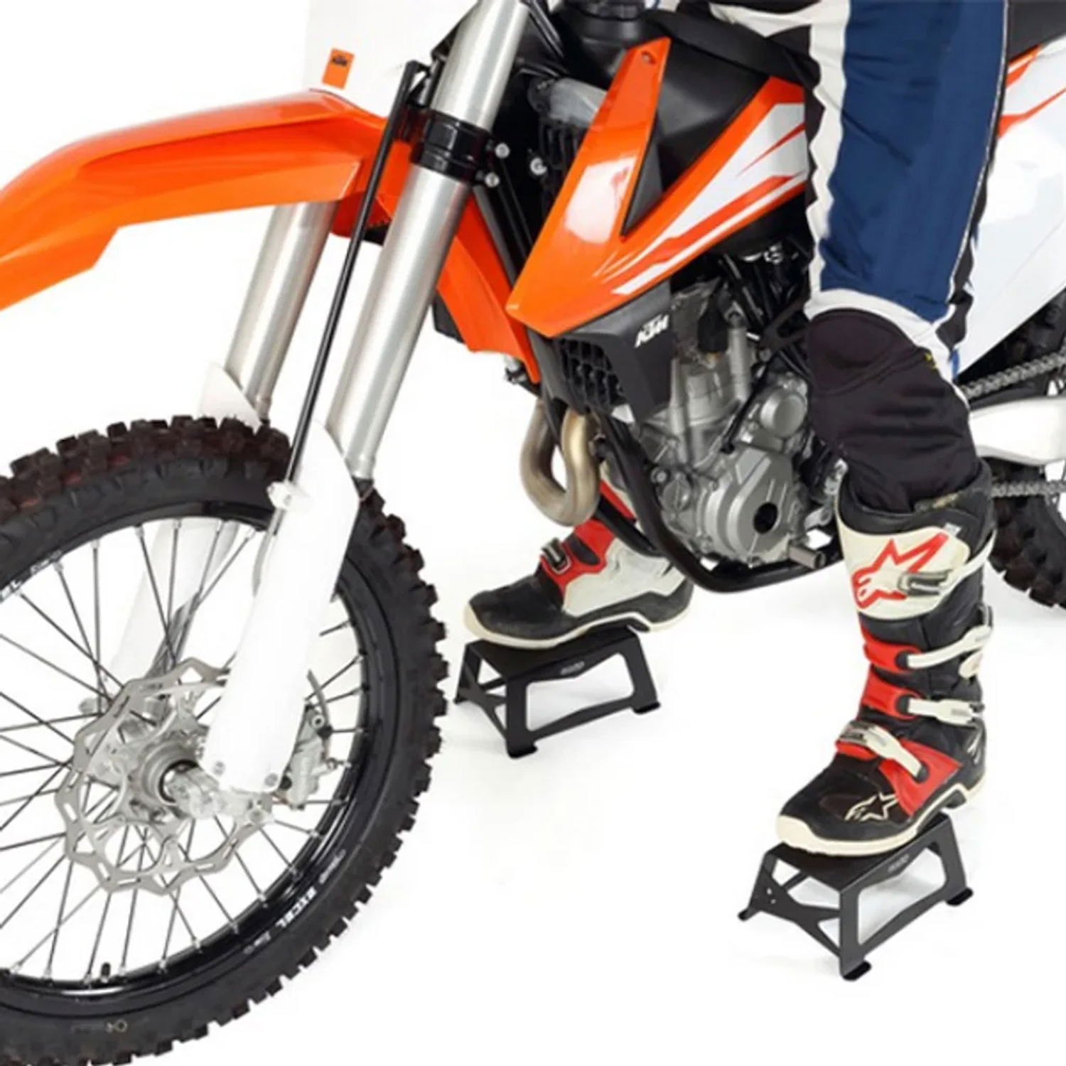 The Unit starting blocks are foot riser supports for young and shorter motocross riders at the starting gate. Made from steel each block is 4in (10cm) high with a non-slip top surface to give riders better stability at the gate.