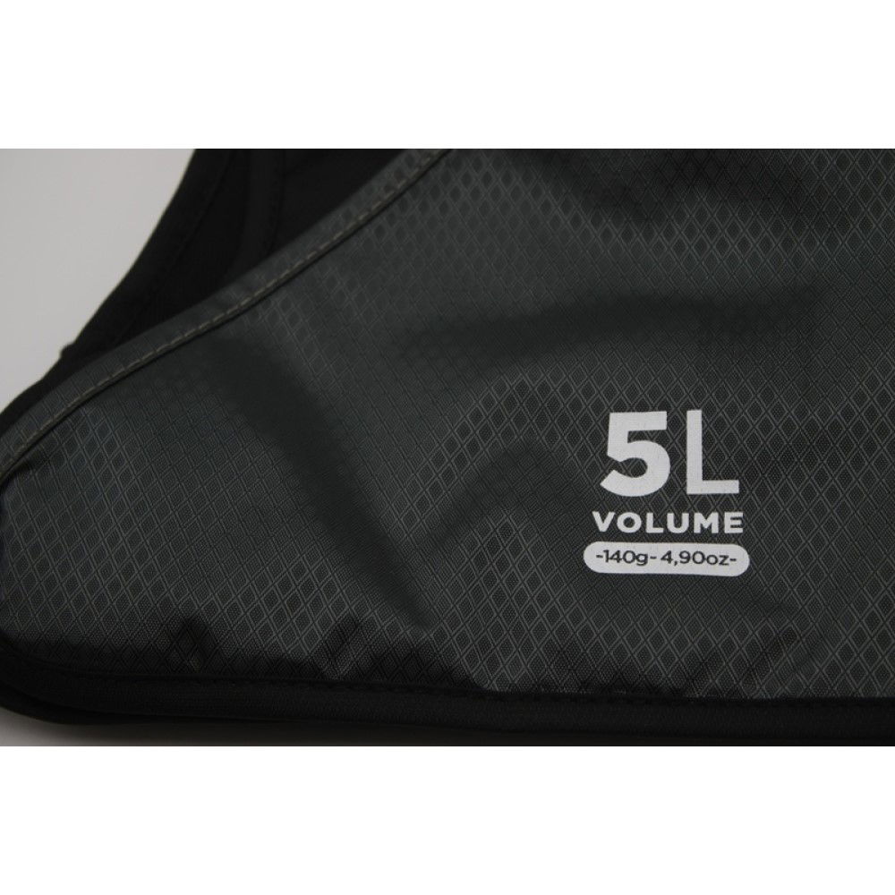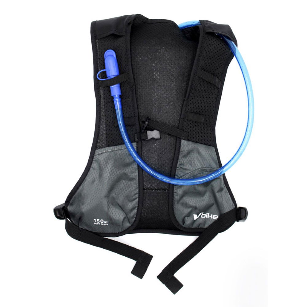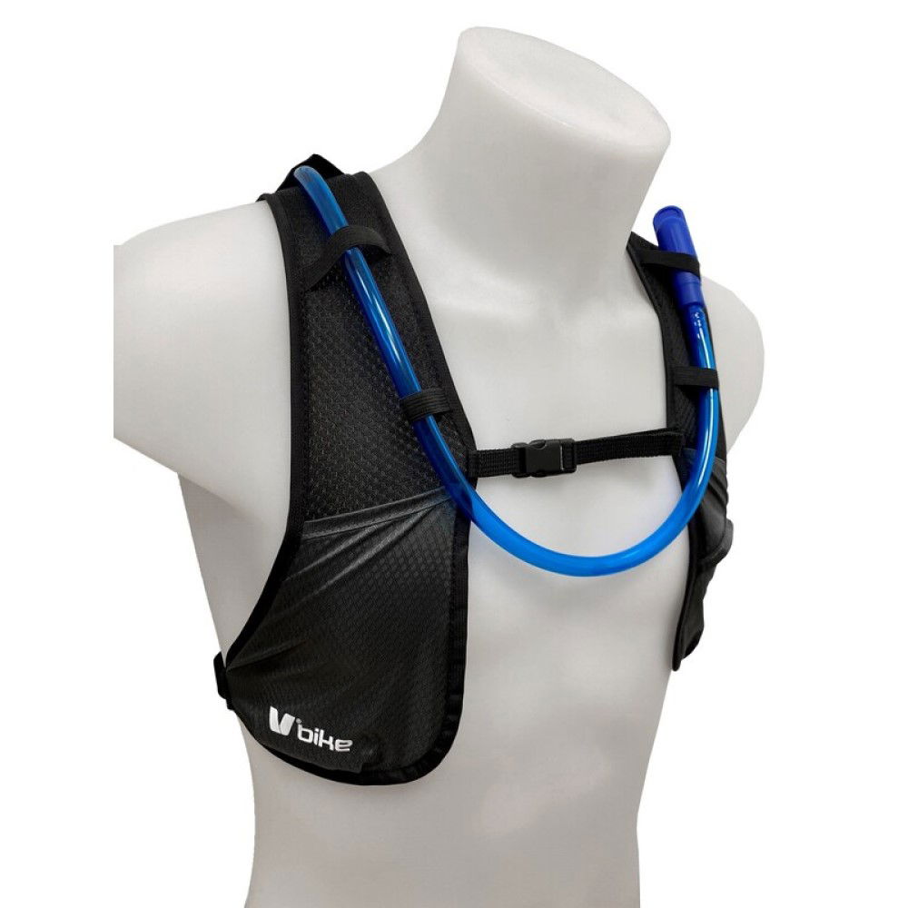 The V Bike 5 Litre Hydration pack is designed to carry the basics during long races and medium-distance training. It offers five pockets for essential accessories, tools, or extra soft flasks. Suitable for mountain biking, climbing, mountaineering, snowboarding, off-roading and skiing. Weighing only 140 grams, this 5L vest adapts to your morphology, and you hardly notice it. It has a minimalist, compact and aerodynamic design with five completely independent compartments. The main compartment has a carabiner to hold the water tank, two front exterior compartments, and one kangaroo pocket on the back to carry your essentials. Internal thermal lining insulates against temperature and humidity to keep fresh water longer. It has a quick clip closure on the chest, double fastening of the water tank tube on the left and right handles, and an inner guide for the tube. The two-litre water tank hydrates you quickly during medium and long routes. The tank is easy to fill and close. Its volume provides up to 4 hours of autonomy. It is compatible with 5L and 10L trail backpacks and vests and measures 31 x 16 cm with a 100 cm tube. It is easy to clean and fill, offers antimicrobial technology, and admits liquids between -20ºC and 40ºC. Don't refill it with milk or alcohol, and don't put it in the microwave. The malleable tube is easy to handle, and the long-necked straight teat allows for a faster and easier intake since it avoids excessive cable bending. It has a protective cap to prevent it from getting dirty or damaged. In the race, it doesn't drip. To drink, squeeze the end with your mouth and suck—high-quality valve.